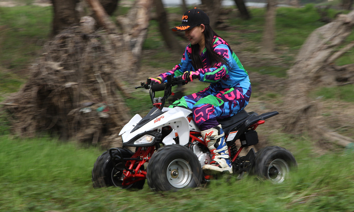 是青少年使用的,華洋全地形車系列中最初級的專業(yè)級運動型沙灘車,承受成人在場地內(nèi)的小幅度飛跳完全沒有問題??梢宰鳛檫\動訓練車及初級比賽使用。