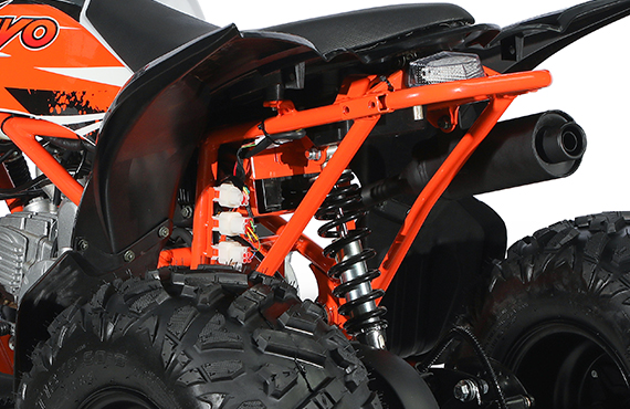 采用華洋賽車專利設計的車架結(jié)構(gòu),在同級別產(chǎn)品中強度最好,重量最輕。充分發(fā)揮了運動車的靈活、輕便的特征,使得整車操控更加輕盈、靈活。