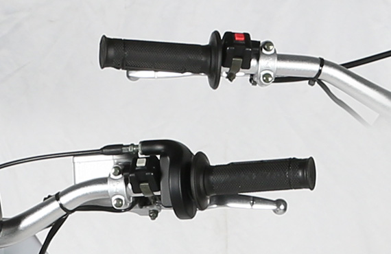 使用升級鋁變徑方向把,專業(yè)競技款把套手握更舒適,大扭油油門座,提速操控更好。