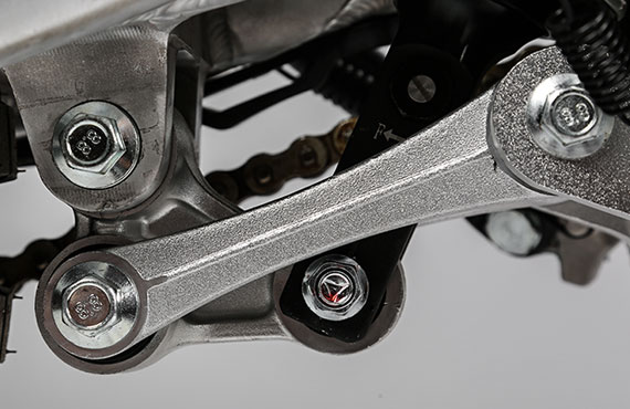 全新優(yōu)化設(shè)計(jì)的鋁搖臂系統(tǒng) 。新設(shè)計(jì)減震器緩沖的角度,配以升級后的后減系統(tǒng),有效避免大跳沖底現(xiàn)象